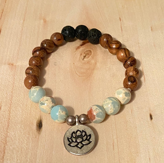 African Opal Jasper Bracelet | Mala Bracelet | Wood Braclet | Lotus Bracelet | Diffuser Bracelet | Yoga Jewelry | Meditation | Yoga | Opal |