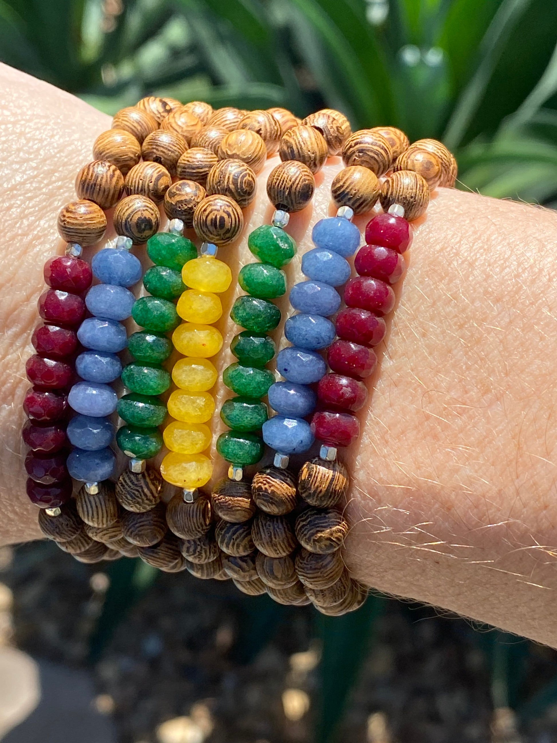 Faceted Jade & Wood Roundel Bracelet | Boho Bracelet | Wood Bracelet | Natural Stone Bracelet | Yoga | Meditation