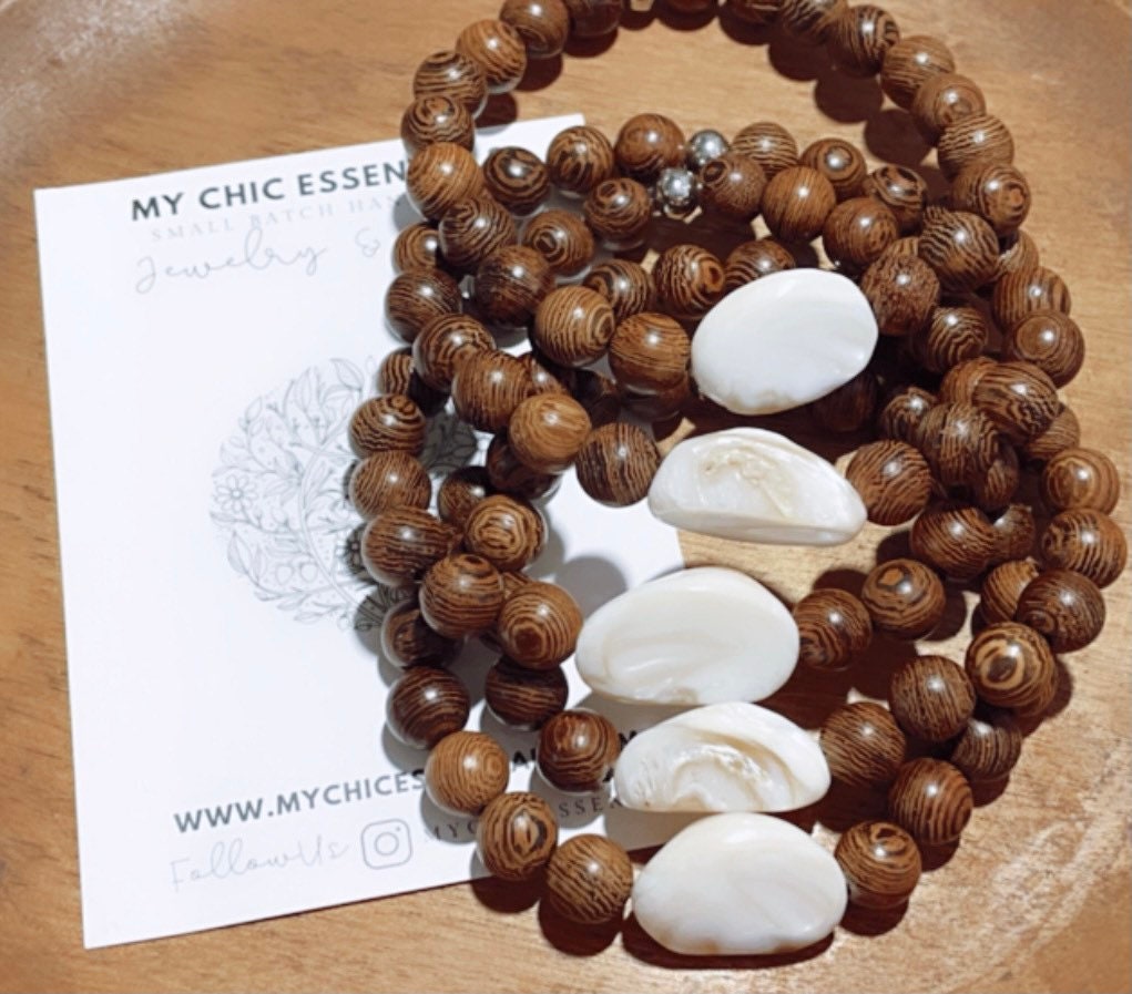 Mother of Pearl Mala Braclet | Women’s Bracelet | Men’s Bracelet | Diffuser Braclet | Wood Bracelet| Yoga | Meditation | Natural Stone