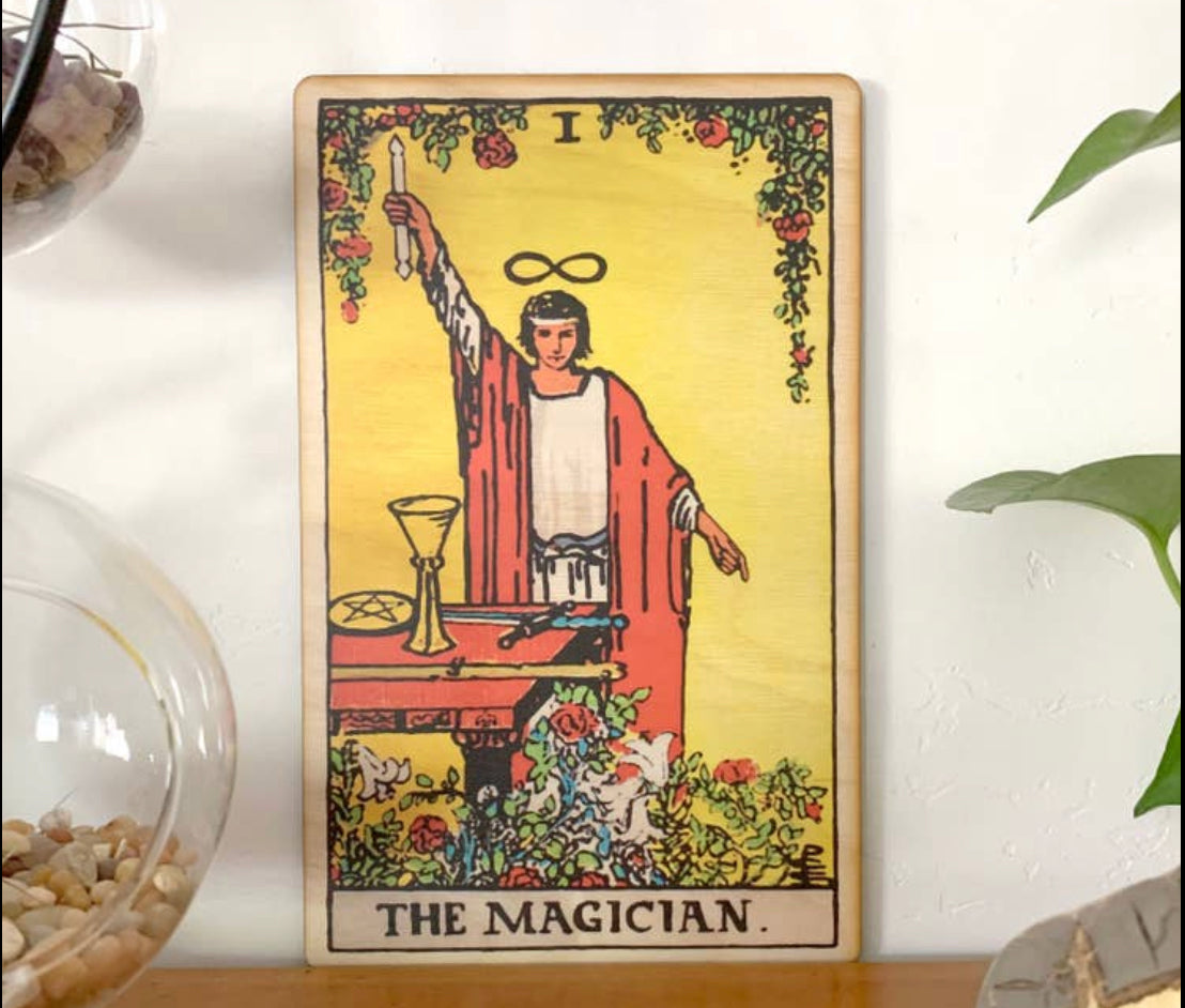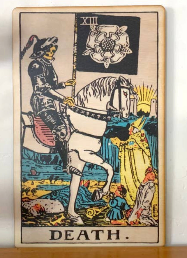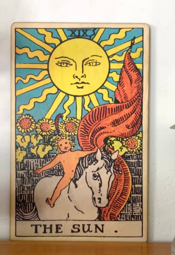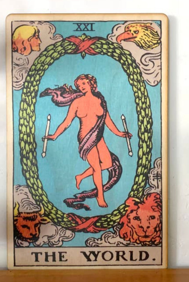 Featuring a full color imprint of your favorite tarot card on 1/4” Baltic birch plywood. Size is 6.25 X 10” with convenient backing with space to hang on any standard nail.
